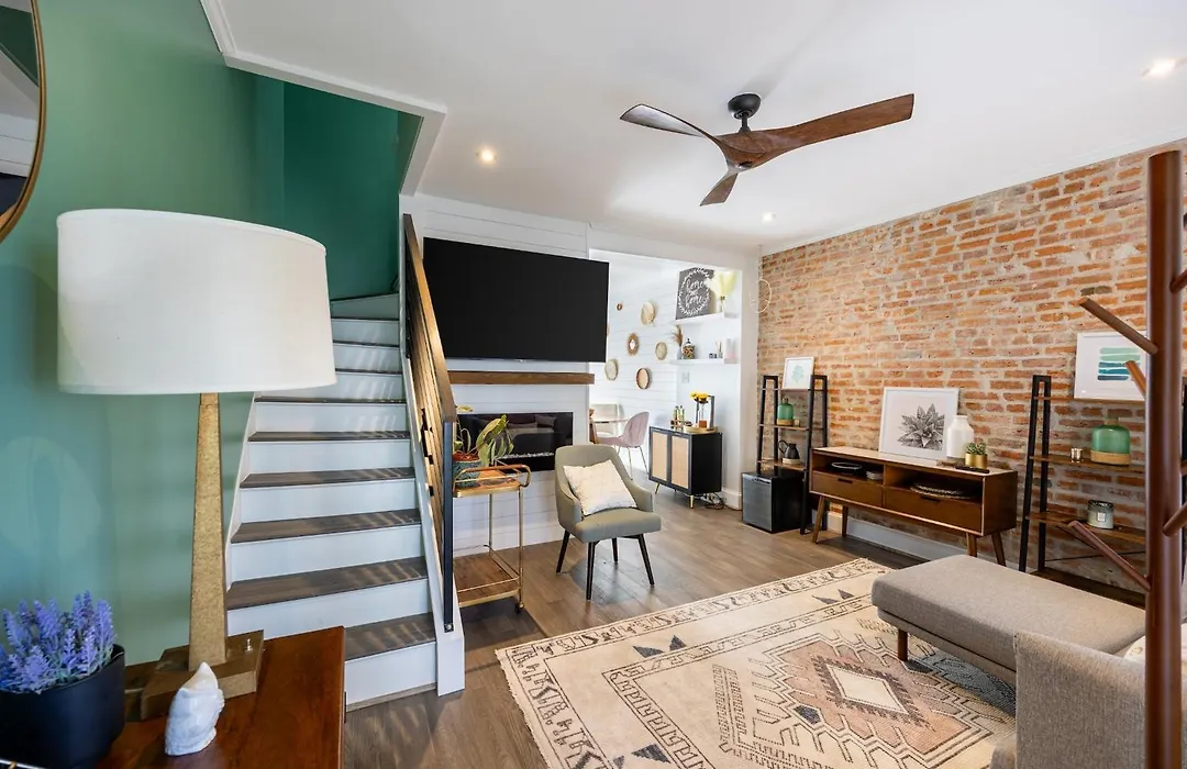 1-slaapkamer Charming 2Br Townhouse With Patio & Parking In Dc Appartement is compleet met een patio en een zitruimte en ingericht met een stenen open haard en biedt voorzieningen zoals airconditioning. Naast een TV en een flatscreen TV met satellietzenders kunnen gasten ook een bank gebruiken voor comfort en ontspanning. Niet-allergene kussens, hypoallergische kussens en anti-allergische zachte of harde kussens worden er verstrekt. 1 badkamer met een apart toilet en een douche samen met een haardroger en handdoeken wordt aangeboden.